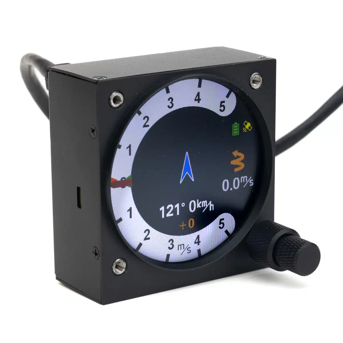 Großes Augenmerk wurde vom Entwicklungsteam auch auf eine gute Ablesbarkeit gerichtet. So unterstützen bei der Unterscheidung der Kurzzeit / Langzeitpfeile von Vario und Wind unterschiedliche Farben. Natürlich kann auch ein externer Lautsprecher über Klinke angeschlossen werden, um Steig- und Sinkwerte auch akustisch aufzubereiten.